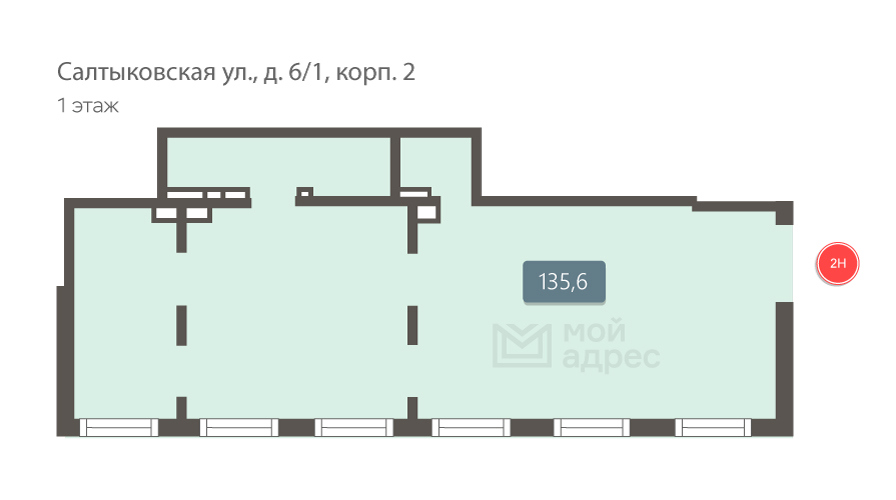Нежилое помещение, 135,6 м² | ВАО, р-н Косино-Ухтомский, Салтыковская ул., д. 6/1, корп. 2, этаж 1, помещение 2Н | Метро: Новокосино (пешком 34 мин., транспортом 26 мин., расстояние 2.27 км)