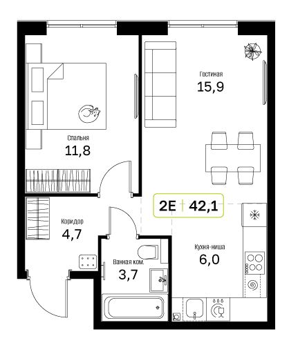 Купить 1к квартиру 42 м² в ЖК "Новый Зеленоград"
