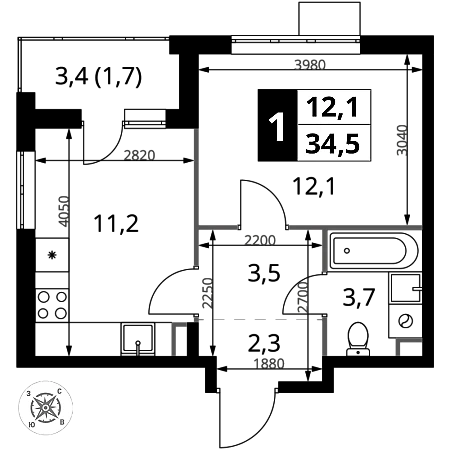 Купить 1к квартиру 38 м² в ЖК "Новый Зеленоград"