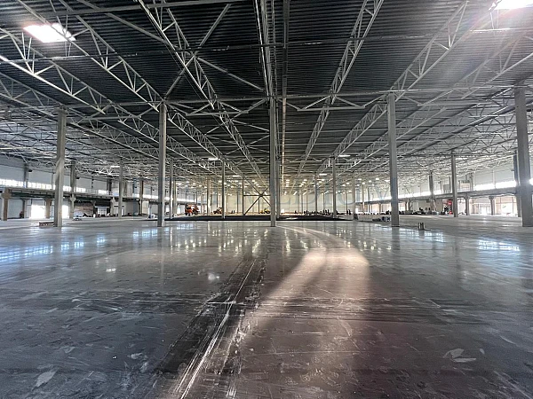 Полы - бетон с антипылью. Высота потолков - 12 м.