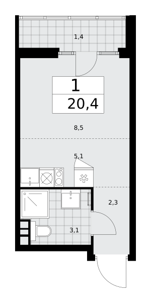 Продаётся квартира-студия, площадью 20,4 кв. м на 11-м этаже дома комфорт-класса в ЖК "Деснаречье". Квартира с функциональной планировкой: большие окна, высота потолка 2,99 м, балкон.