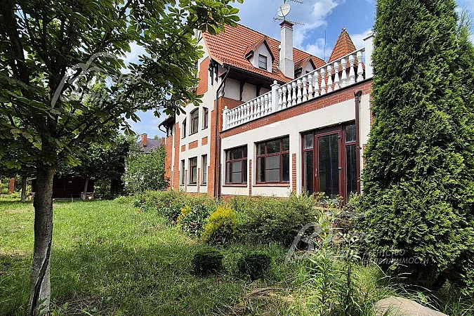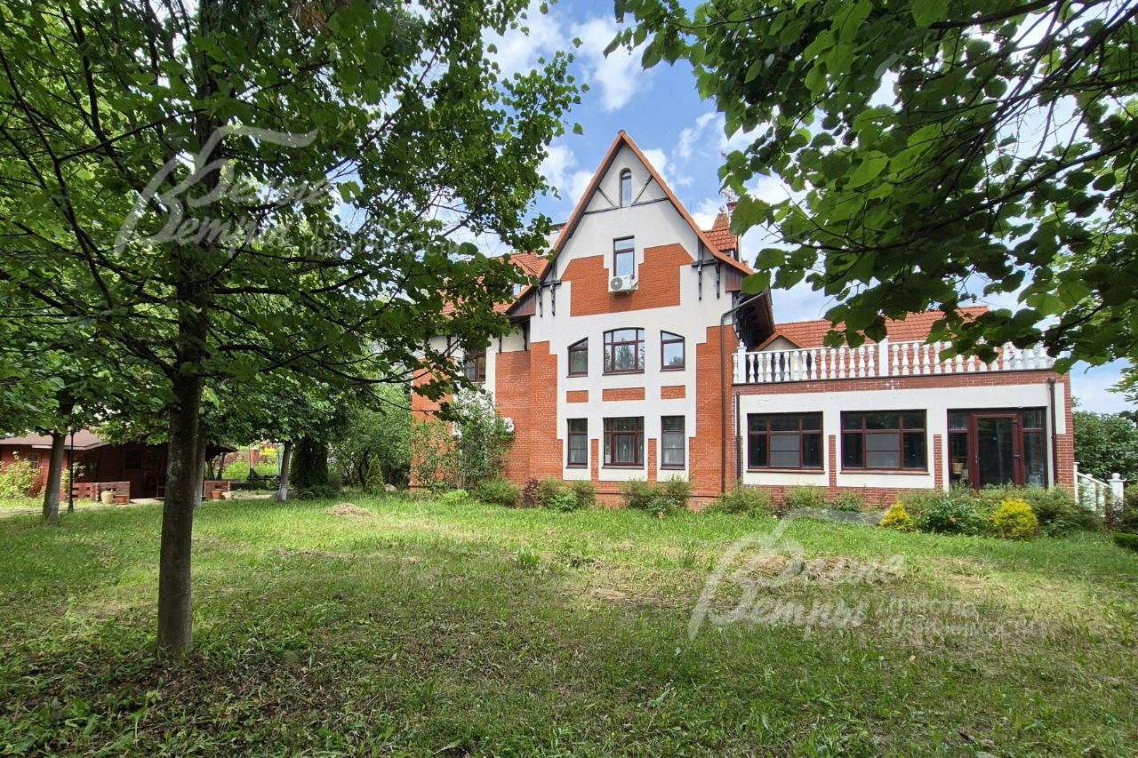 Просторный дом в классическом английском стиле на зеленом участке 20 соток в обжитом охраняемом поселке. В доме много спален и санузлов, большой каминный зал со вторым светом, бильярдная в теплой террасе, гараж. Выполнена дорогая дизайнерская отделка с использованием натуральных материалов, антикварная мебель и гарнитуры из массива дерева. На участке перед домом также есть крытая парковочная площадка .