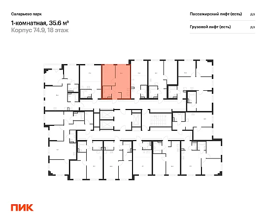 Продаётся 1-комн.квартира площадью 35.60 кв.м на 18 этаже 18 этажного дома (Корпус 74.9, секция 9) проекта ПИК Саларьево парк. Светлый просторный подъезд на уровне земли, функциональная планировка, большие окна, с отделкой.