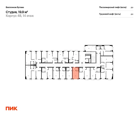 Продаётся квартира-студия площадью 19.90 кв.м на 14 этаже 17 этажного дома (Корпус 48, секция 2) проекта ПИК Восточное Бутово. Светлый просторный подъезд на уровне земли, функциональная планировка, большие окна, с отделкой.