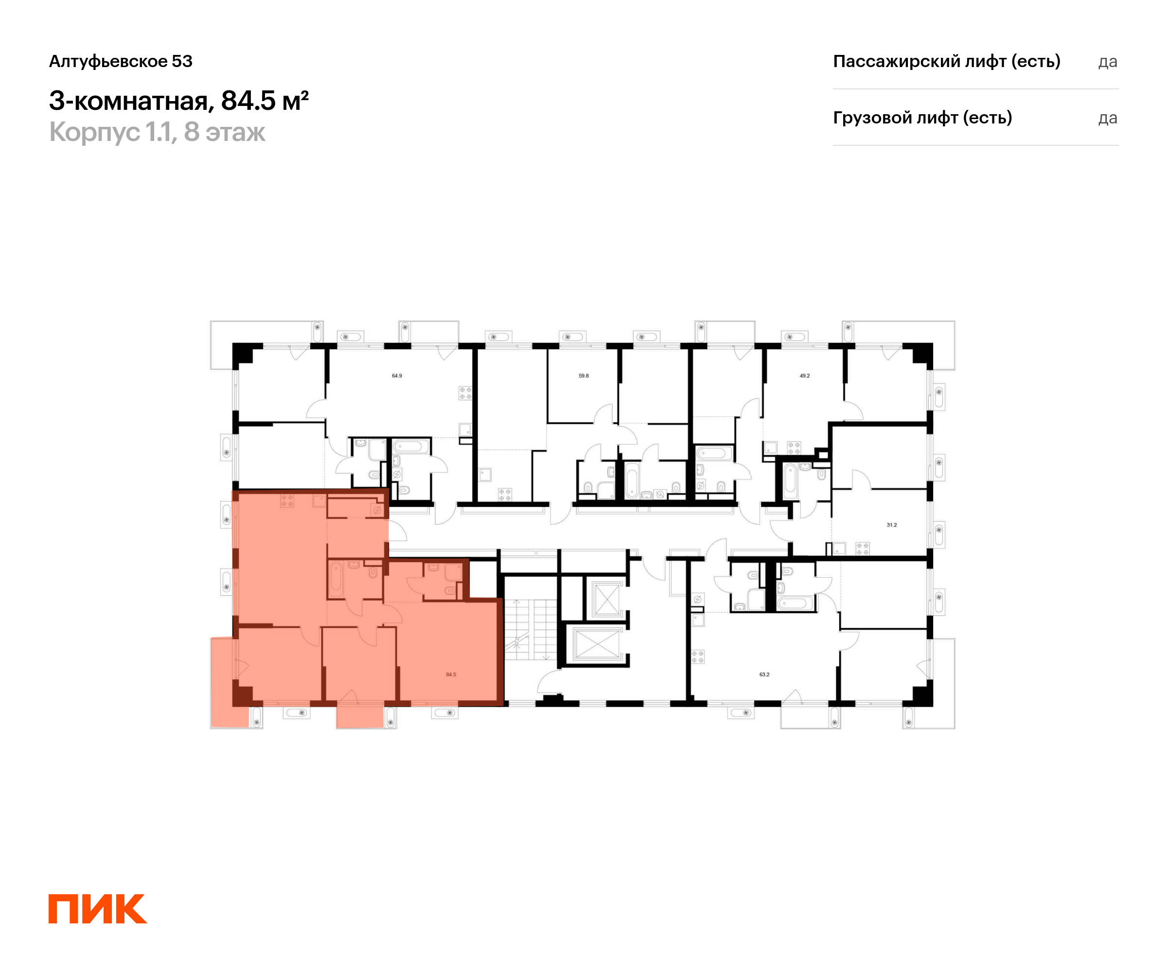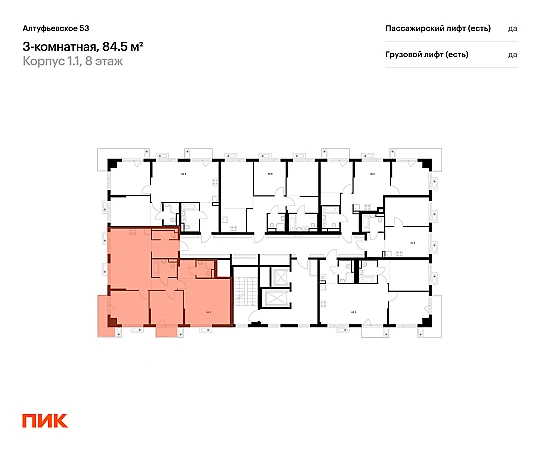 Продаётся 3-комн.квартира площадью 84.40 кв.м на 8 этаже 22 этажного дома (Корпус 1.1, секция 1) проекта ПИК Алтуфьевское 53. Светлый просторный подъезд на уровне земли, функциональная планировка, большие окна, с отделкой.