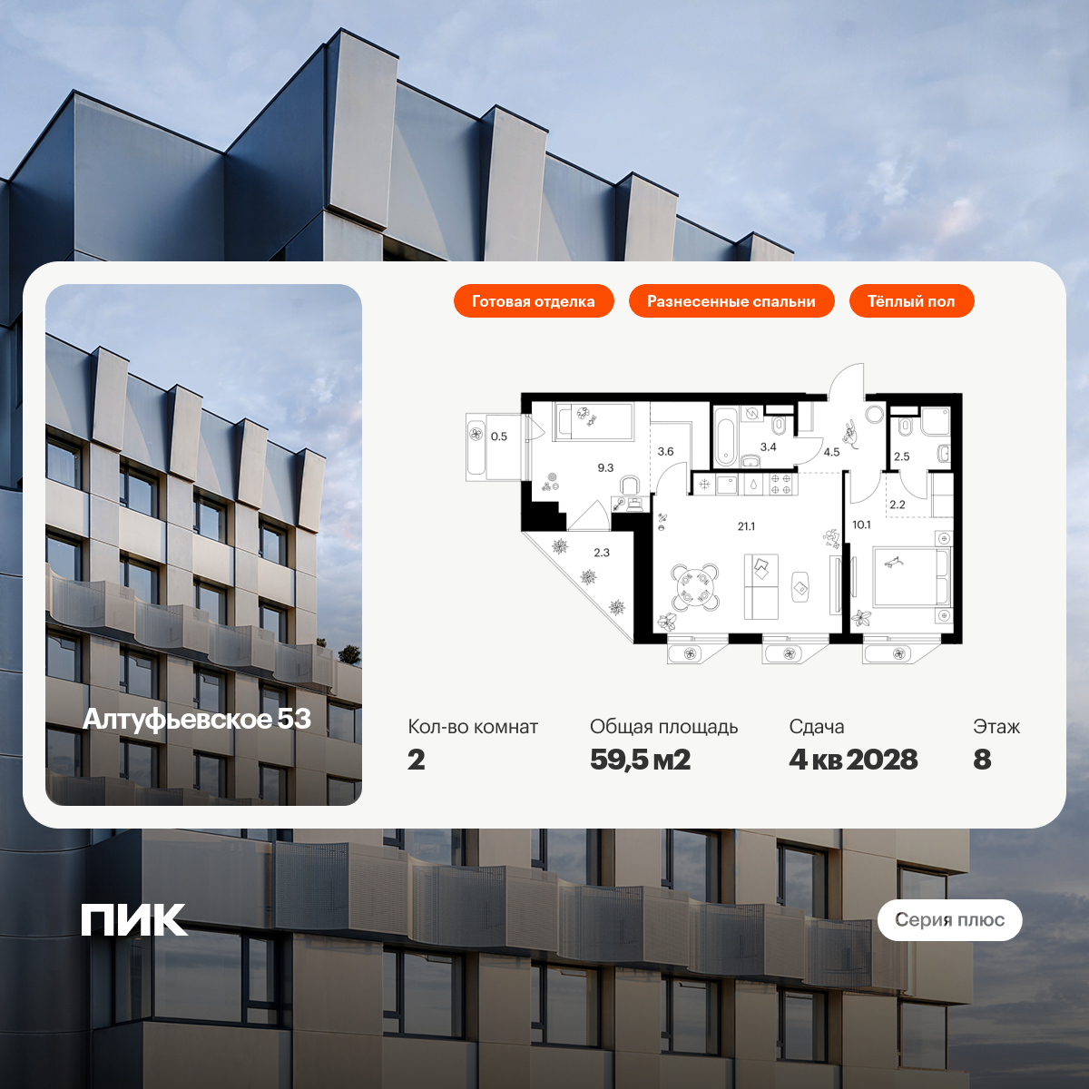 Купить 2к квартиру 59 м² в ЖК Алтуфьевское 53