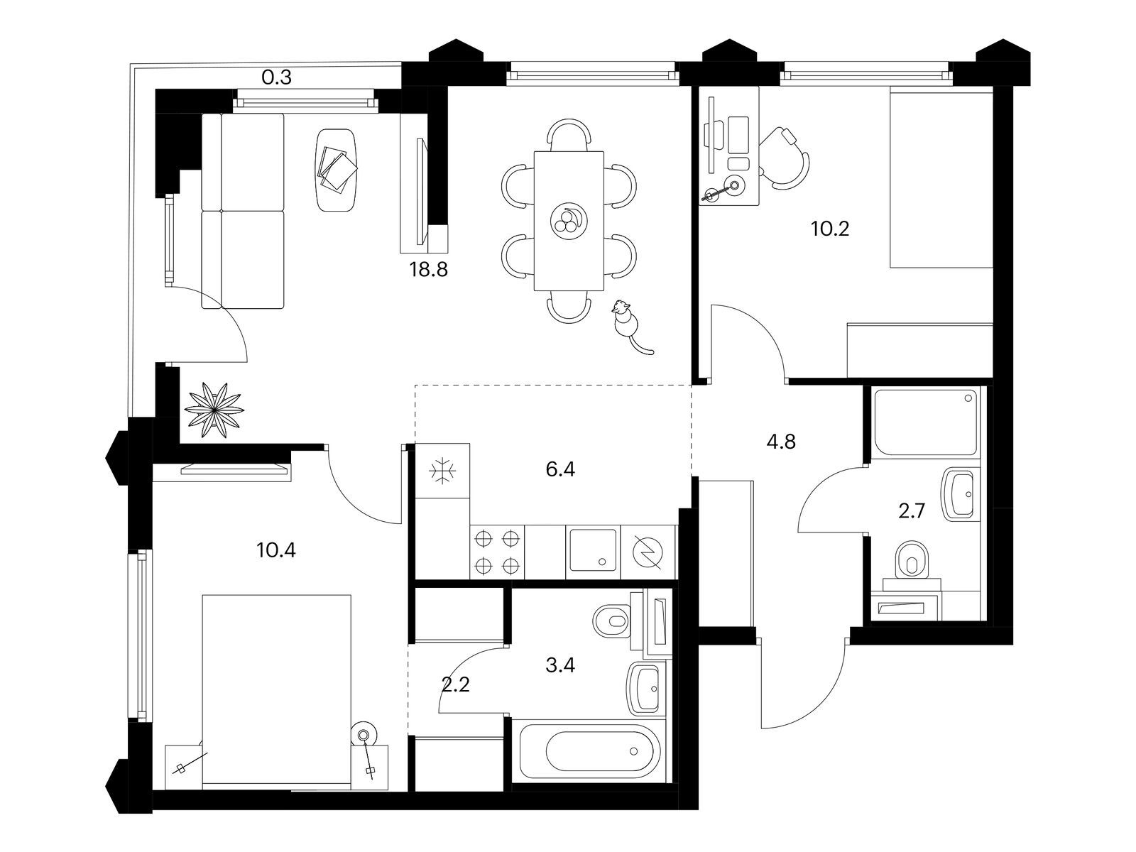 В корпусе 1.4 появится общественная терраса на 30-м этаже. Доступ сюда есть только у жителей, поэтому вы не встретите в этом пространстве посторонних людей. Здесь можно заниматься спортом, отдохнуть за чтением книги или создать собственный сад. А ещё отсюда открываются красивые виды на город.