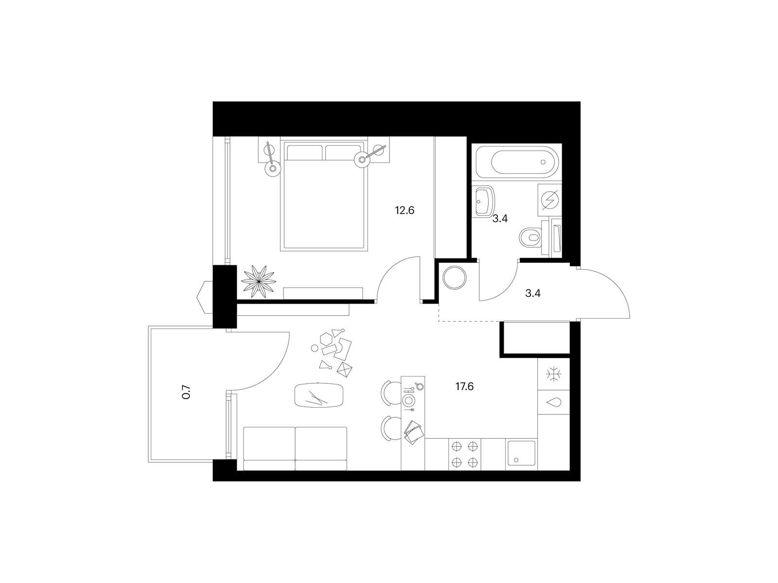 В корпусе 1.4 появится общественная терраса на 30-м этаже. Доступ сюда есть только у жителей, поэтому вы не встретите в этом пространстве посторонних людей. Здесь можно заниматься спортом, отдохнуть за чтением книги или создать собственный сад. А ещё отсюда открываются красивые виды на город.