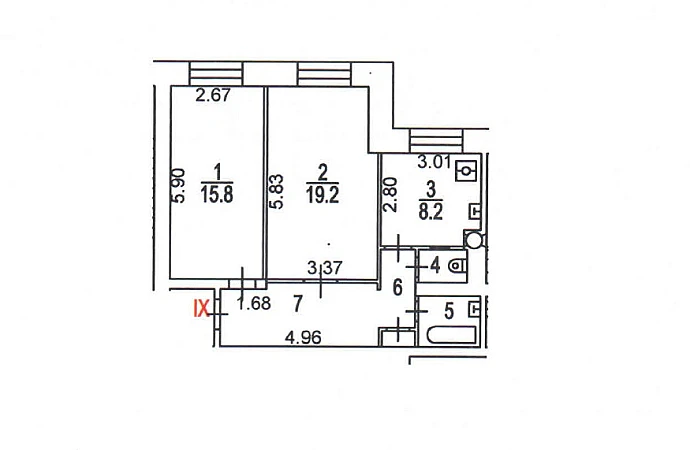 Площадь: 58,5 м2.