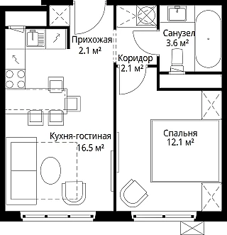 Площадь квартиры составляет: 28.7 кв. м, потолки: 3.1 м