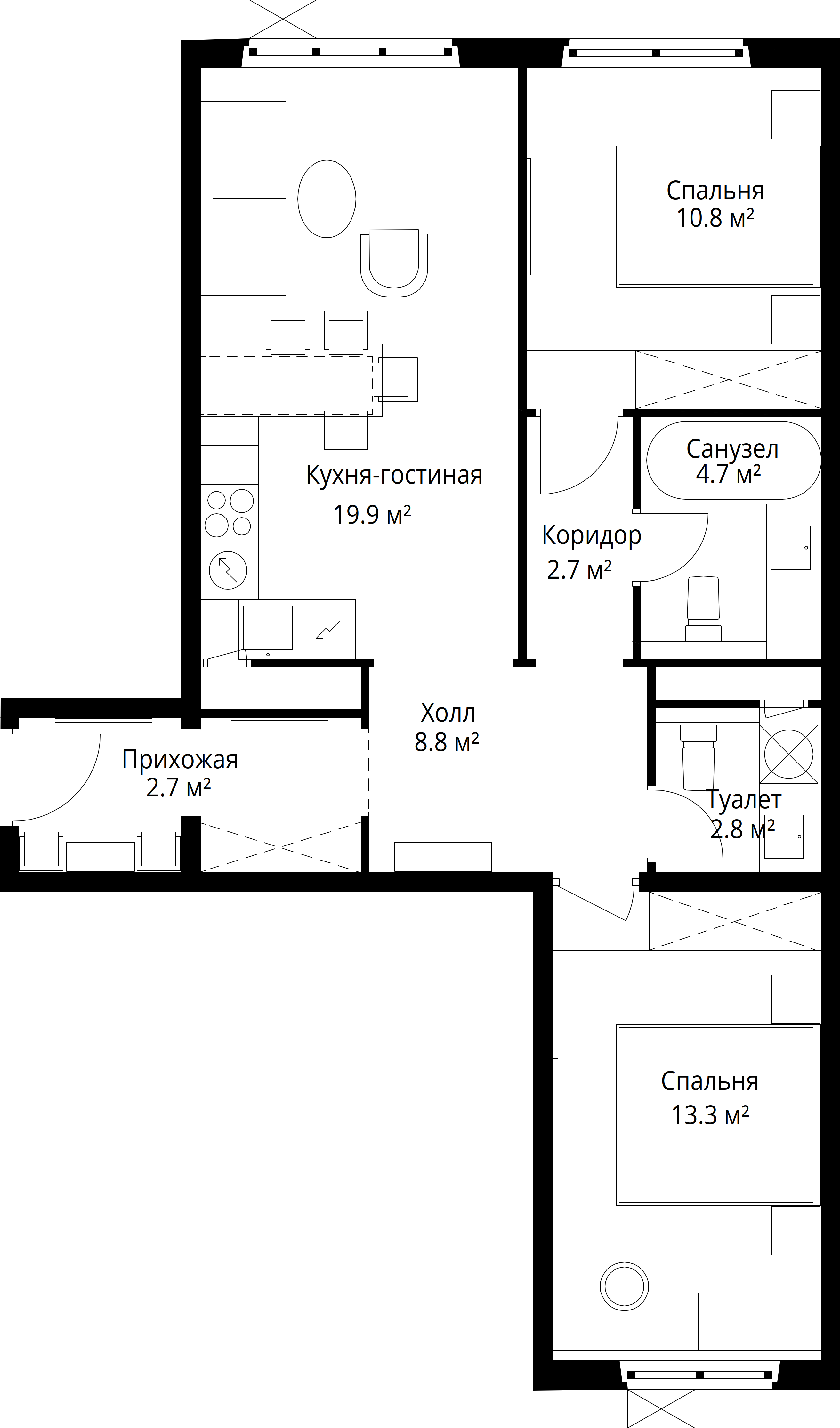 Главная Купить квартиру в Москве и МО 2к квартира 65 м² в мкр Купелинка (д Сапроново)