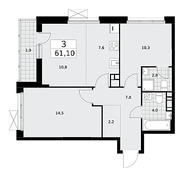 Большая кухня: 10,4 м2.