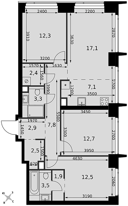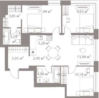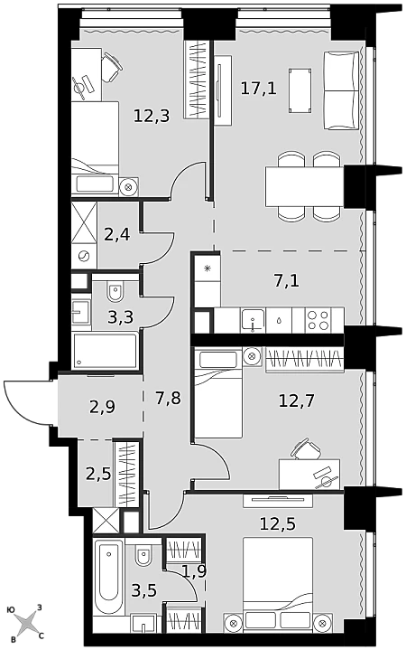 Приобреталась по Договору участия в долевом строительстве. По ДДУ квартира трехкомнатная. Две отдельные спальни, два санузла, большая кухня-гостиная, есть балкон. Комфортная и продуманная планировка с большим остеклением. Без отделки.