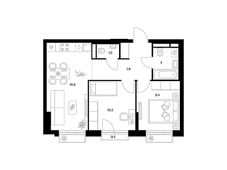 Квартира, 2-комн., 42,5 м², ЮАО (р-н Нагатино-Садовники, (м.Нагорная) | ЮАО, р-н Нагатино-Садовники, Каширское ш., д. 4, корп. 3, Этаж № 2, кв. 204 | Метро: Нагорная (пешком 18 мин., транспортом 18 мин., расстояние 1.06 км)