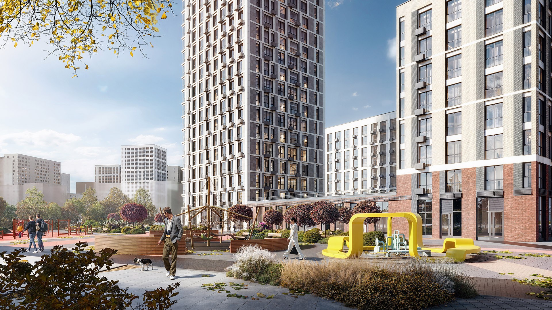 Уже открыто общественное пространство для прогулок, отдыха и встреч жителей: есть игровые площадки, места для отдыха, пешеходные маршруты и велопарковка. На первых этажах домов работают кафе, магазины, аптеки, медицинские центры и пункты выдачи онлайн-магазинов.