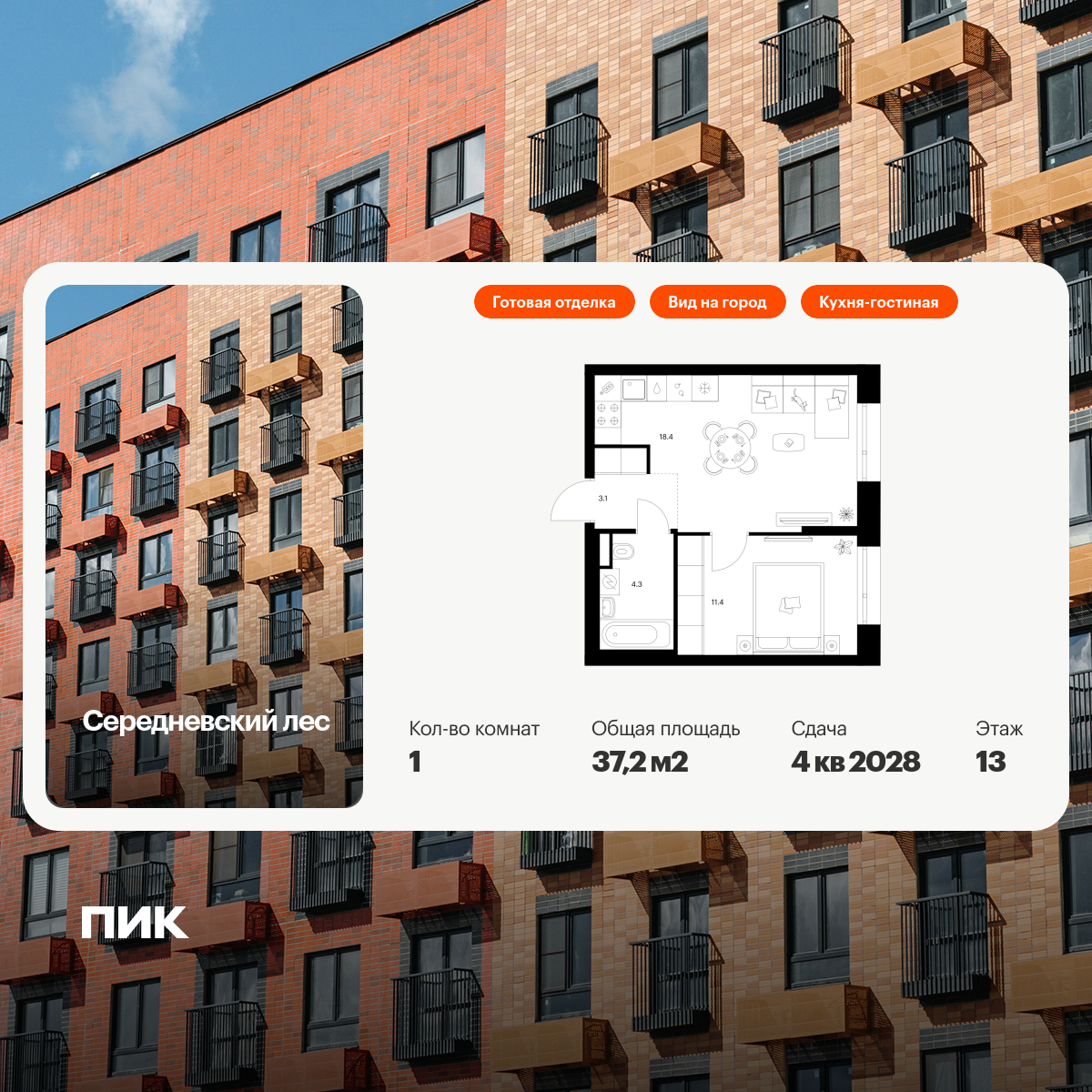 Продаётся 1-комн.квартира площадью 37.20 кв.м на 13 этаже 16 этажного дома (Корпус 2.1.2, секция 2) проекта ПИК Середневский лес. Светлый просторный подъезд на уровне земли, функциональная планировка, большие окна, с отделкой.