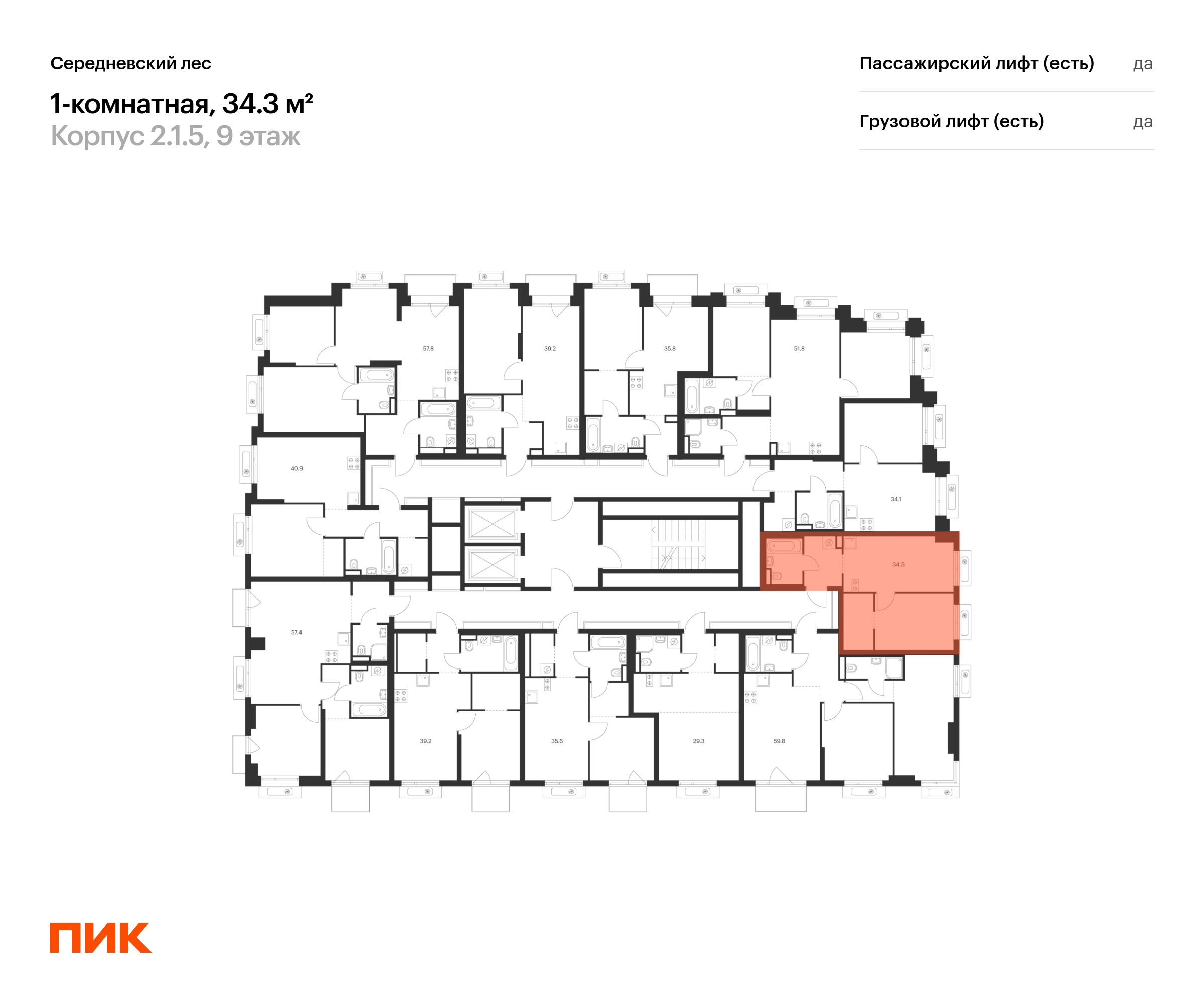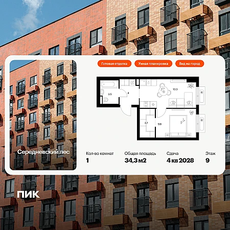 Продаётся 1-комн.квартира площадью 34.30 кв.м на 9 этаже 16 этажного дома (Корпус 2.1.5, секция 5) проекта ПИК Середневский лес. Светлый просторный подъезд на уровне земли, функциональная планировка, большие окна, с отделкой.