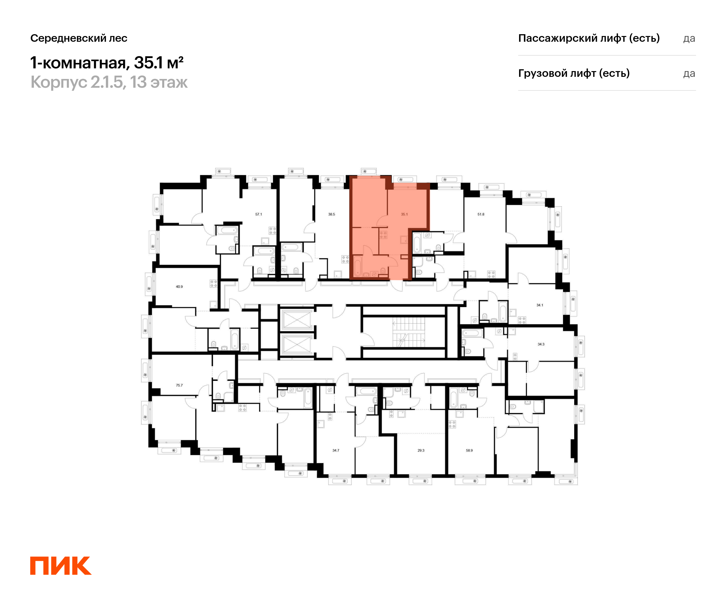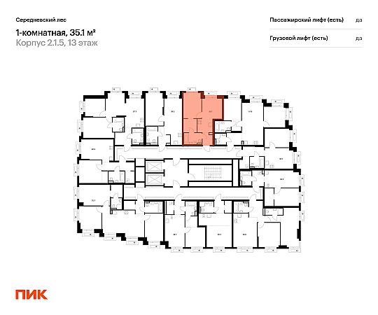 Продаётся 1-комн.квартира площадью 35.10 кв.м на 13 этаже 16 этажного дома (Корпус 2.1.5, секция 5) проекта ПИК Середневский лес. Светлый просторный подъезд на уровне земли, функциональная планировка, большие окна, с отделкой.