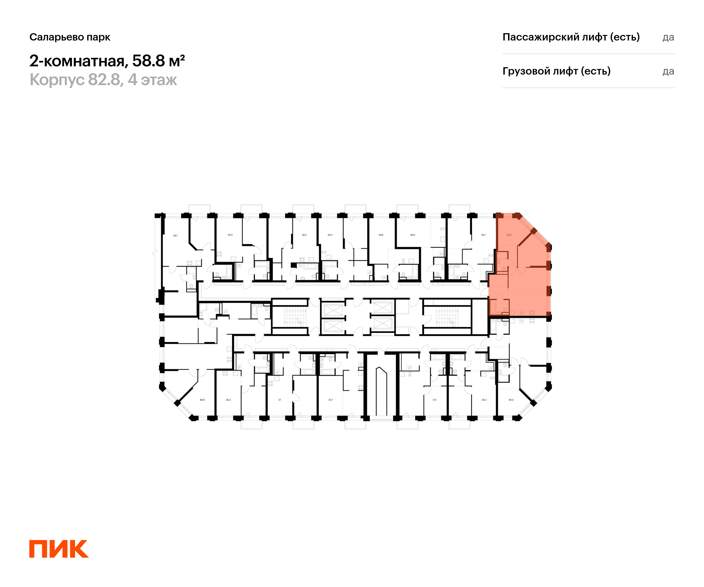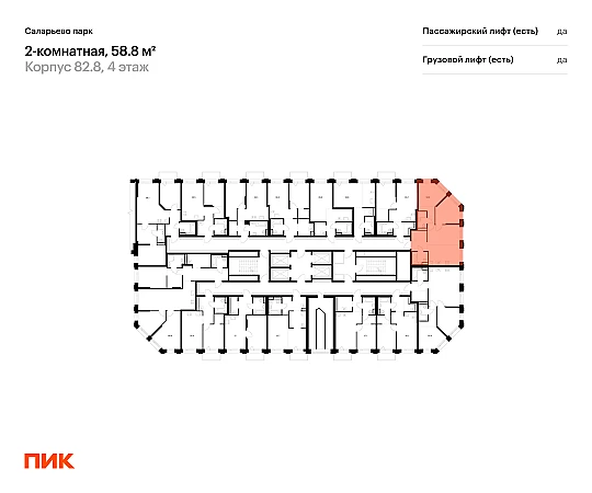 Продаётся 2-комн.квартира площадью 58.80 кв.м на 4 этаже 24 этажного дома (Корпус 82.8, секция 8) проекта ПИК Саларьево парк. Светлый просторный подъезд на уровне земли, функциональная планировка, большие окна, с отделкой.