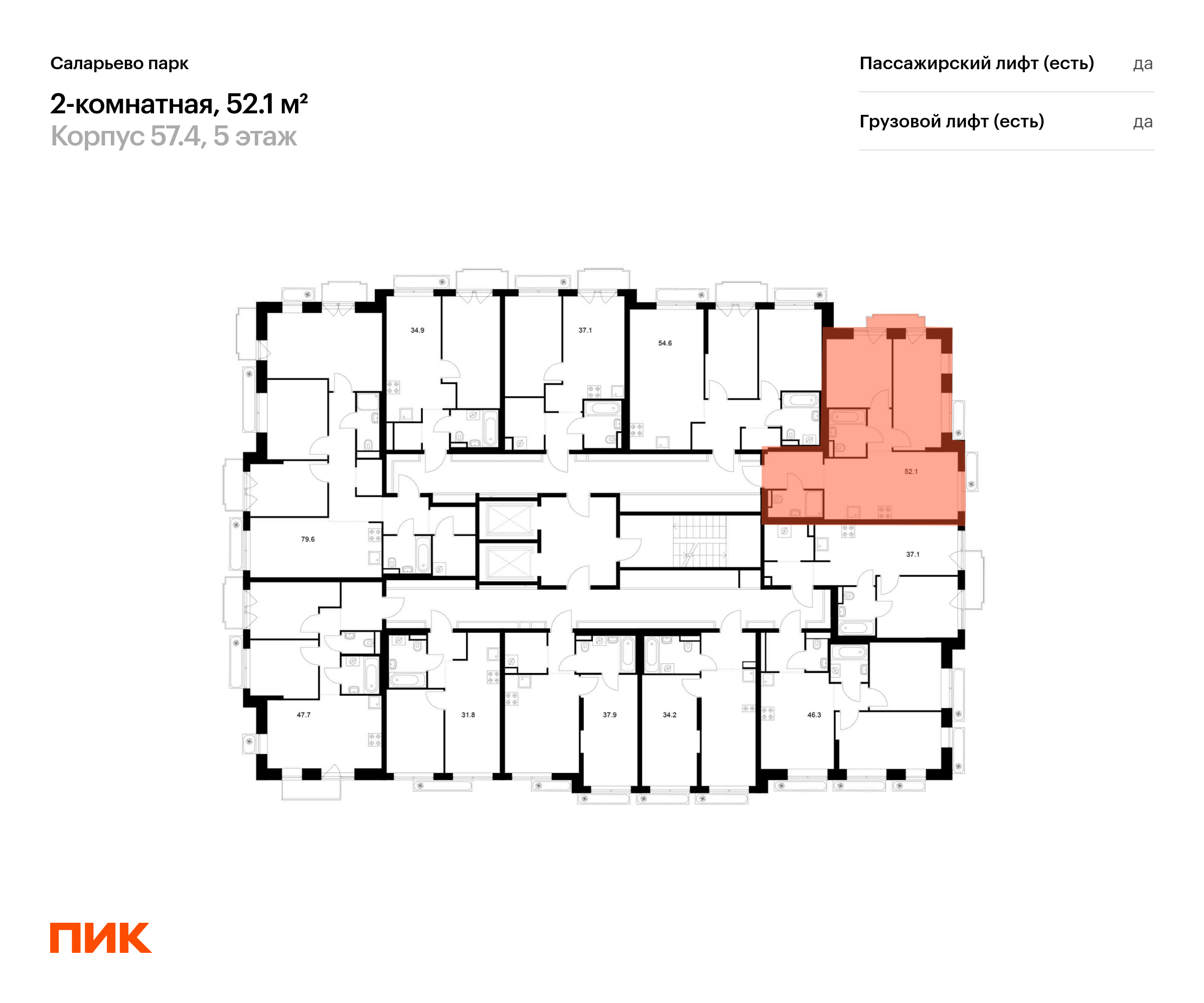 Продаётся 2-комн.квартира площадью 52.10 кв.м на 5 этаже 16 этажного дома (Корпус 57.4, секция 4) проекта ПИК Саларьево парк. Светлый просторный подъезд на уровне земли, функциональная планировка, большие окна, с отделкой.