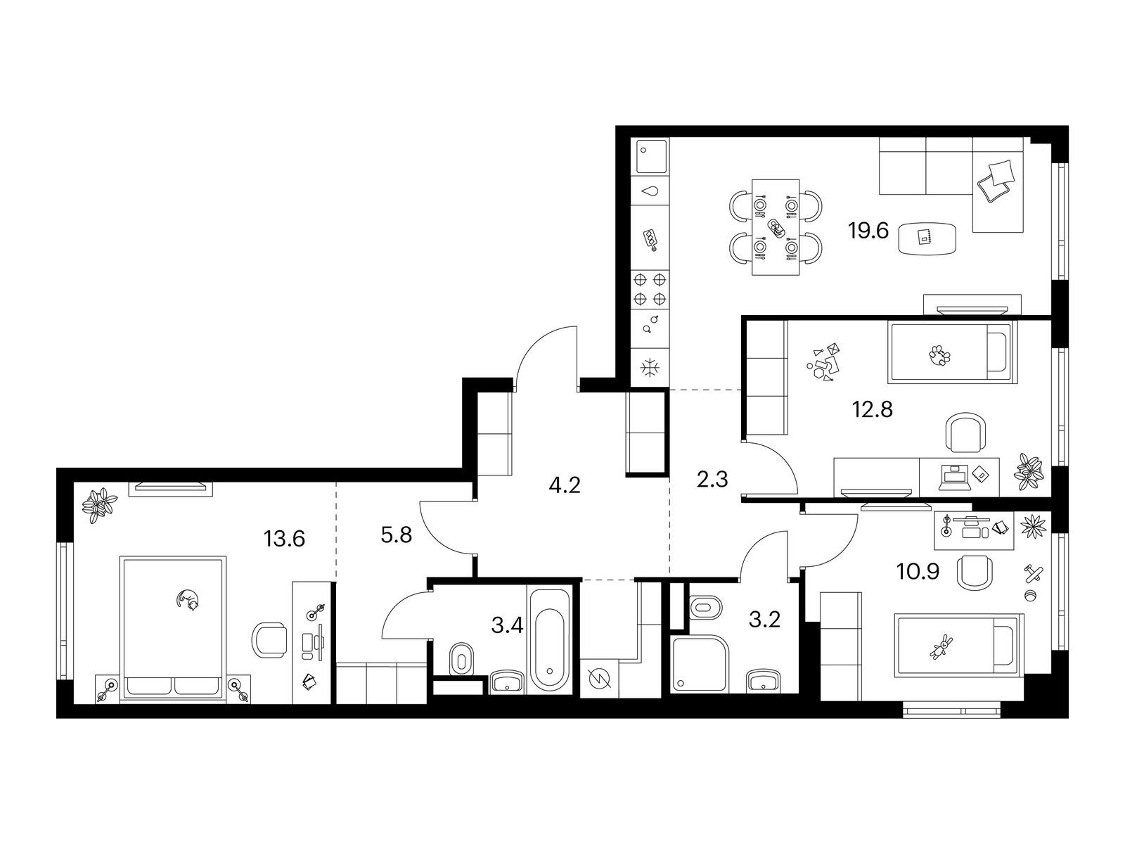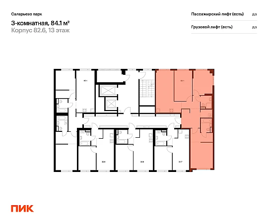 Продаётся 3-комн.квартира площадью 84.10 кв.м на 13 этаже 14 этажного дома (Корпус 82.6, секция 6) проекта ПИК Саларьево парк. Светлый просторный подъезд на уровне земли, функциональная планировка, большие окна, с отделкой.