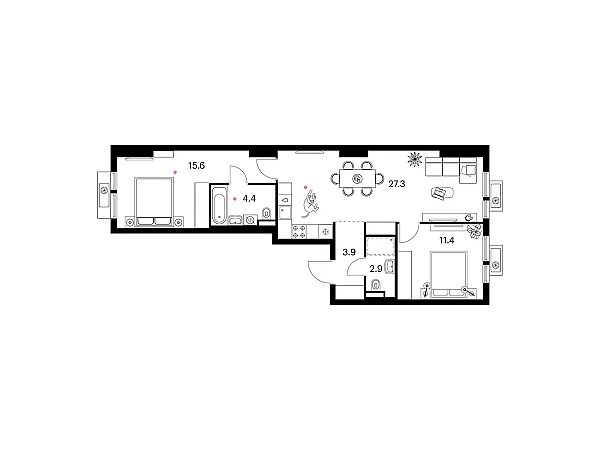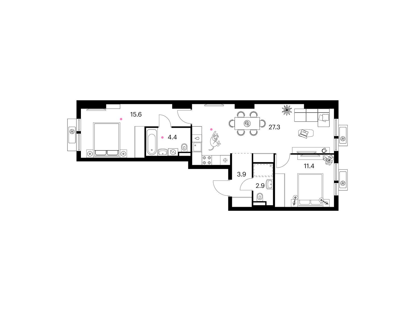 Купить 2к квартиру 65 м² в Белая Дача парк