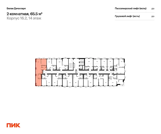 Продаётся 2-комн.квартира площадью 65.50 кв.м на 14 этаже 25 этажного дома (Корпус 16.2, секция 5) проекта ПИК Белая Дача парк. Светлый просторный подъезд на уровне земли, функциональная планировка, большие окна, с отделкой.