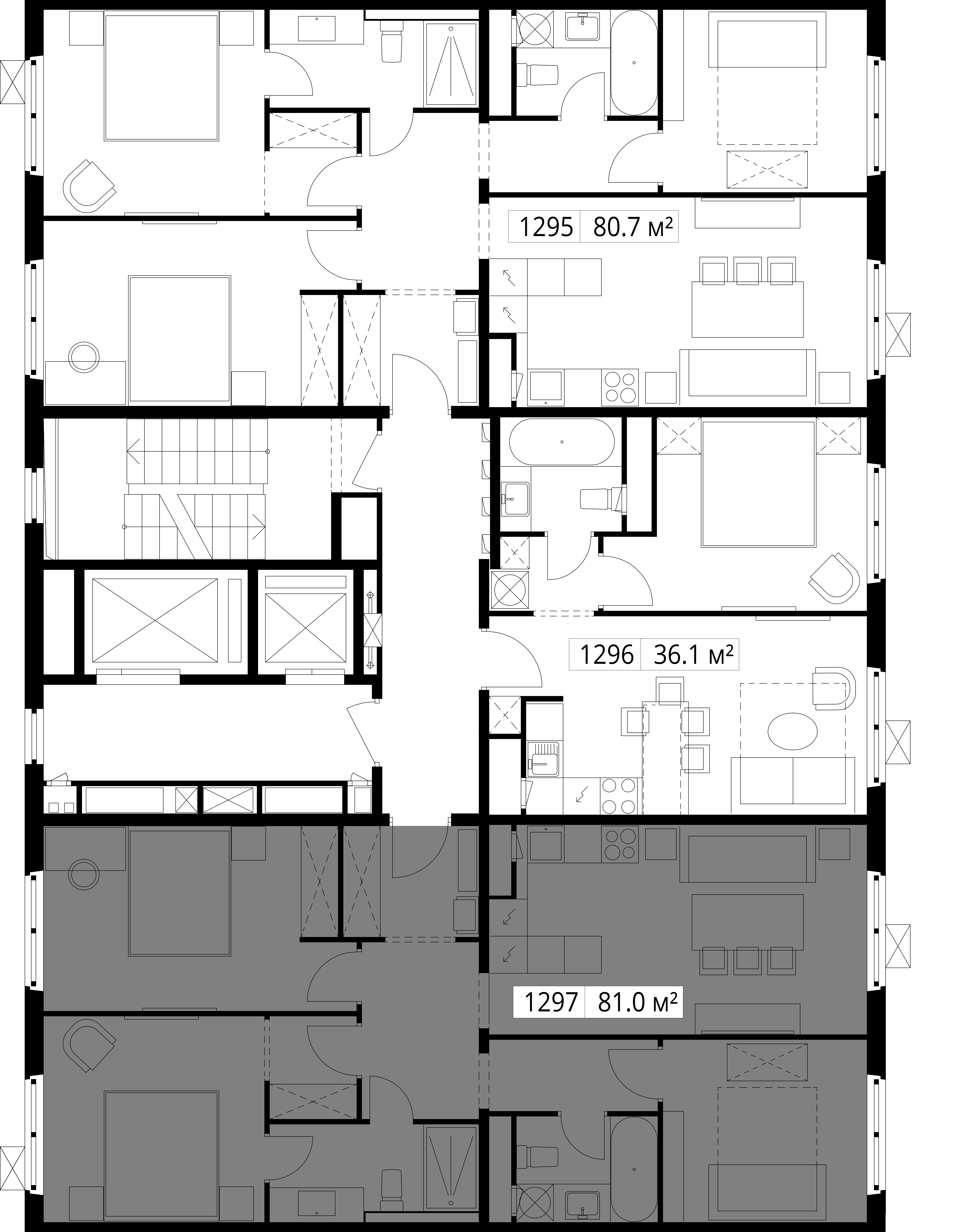 В проекте «Белая Дача парк» широкий выбор планировок для разных сценариев жизни. Есть квартиры с мастер-спальней, кухней-гостиной, гардеробной, постирочной и двумя санузлами. Большим семьям понравятся планировки, где спальни разнесены по разные стороны гостиной.