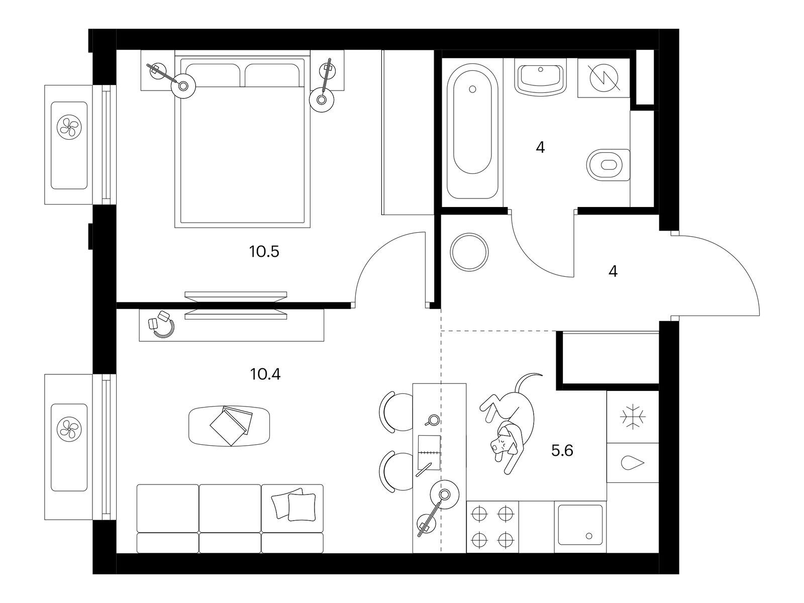 34 м²