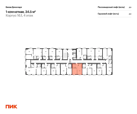 Продаётся 1-комн.квартира площадью 34.50 кв.м на 4 этаже 15 этажного дома (Корпус 16.1, секция 4) проекта ПИК Белая Дача парк. Светлый просторный подъезд на уровне земли, функциональная планировка, большие окна, с отделкой.