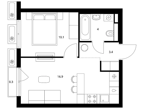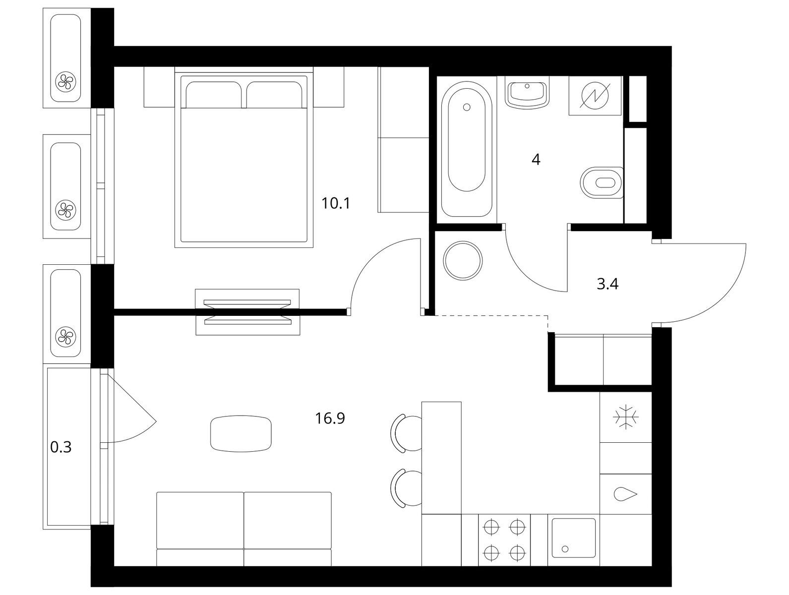 Купить 1к квартиру 34 м² в Восточное Бутово
