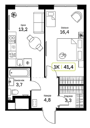 Купить 1к квартиру 41 м² в ЖК "Новый Зеленоград"