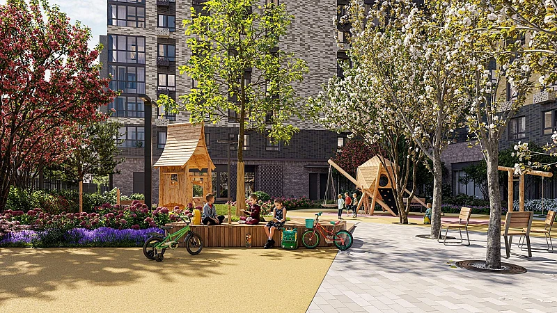 Расположенный между Щелковским шоссе и Амурской улицей, "1-й Измайловский" осмысляет себя не столько через близость к городским точкам притяжения, сколько через соседство с зелеными пространствами и спортивными объектами.