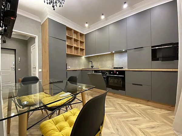Кухонный гарнитур оснащен бытовой техникой, посуда частично. AFY-345528865