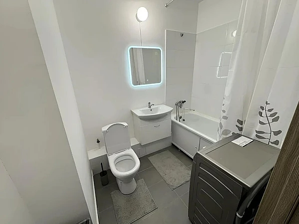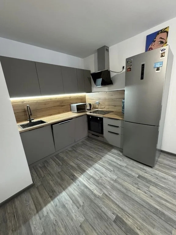 Ремонт сделан из качественных стройматериалов. Есть бытовая техника, стиральная машина, новая мебель.