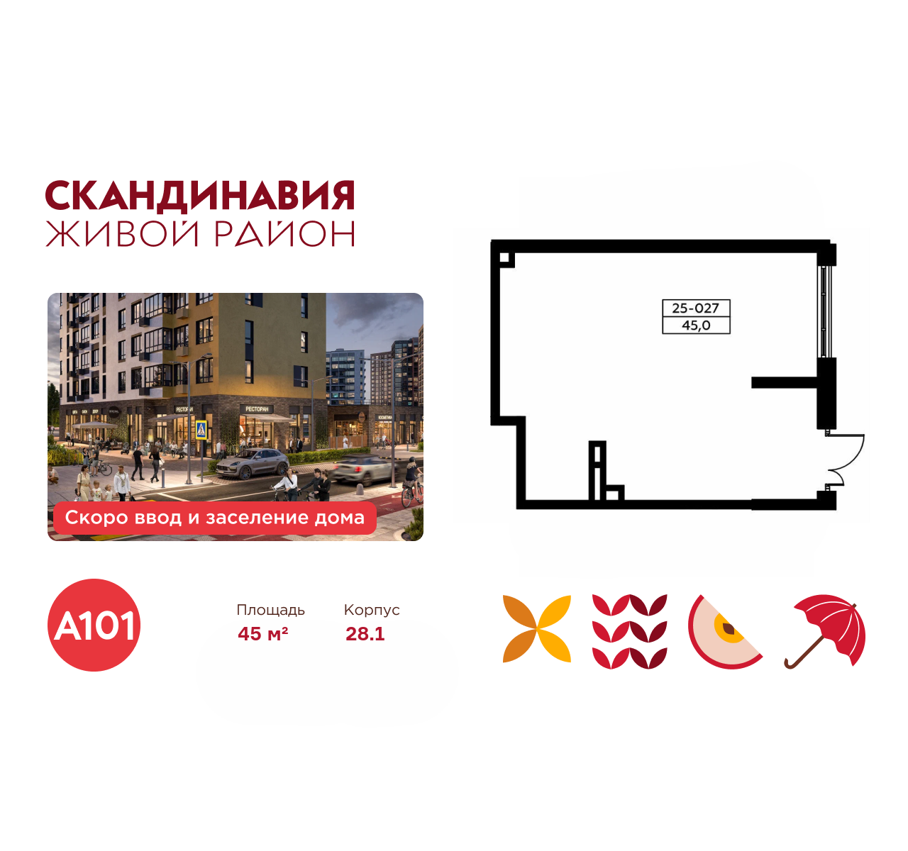 Всё это обеспечивает высокий пешеходный трафик и востребованность коммерческих объектов. Любой объект инфраструктуры «Скандинавии» находится в шаговой доступности. Многие жители не покидают локацию в течение дня, пользуясь услугами и делая покупки.