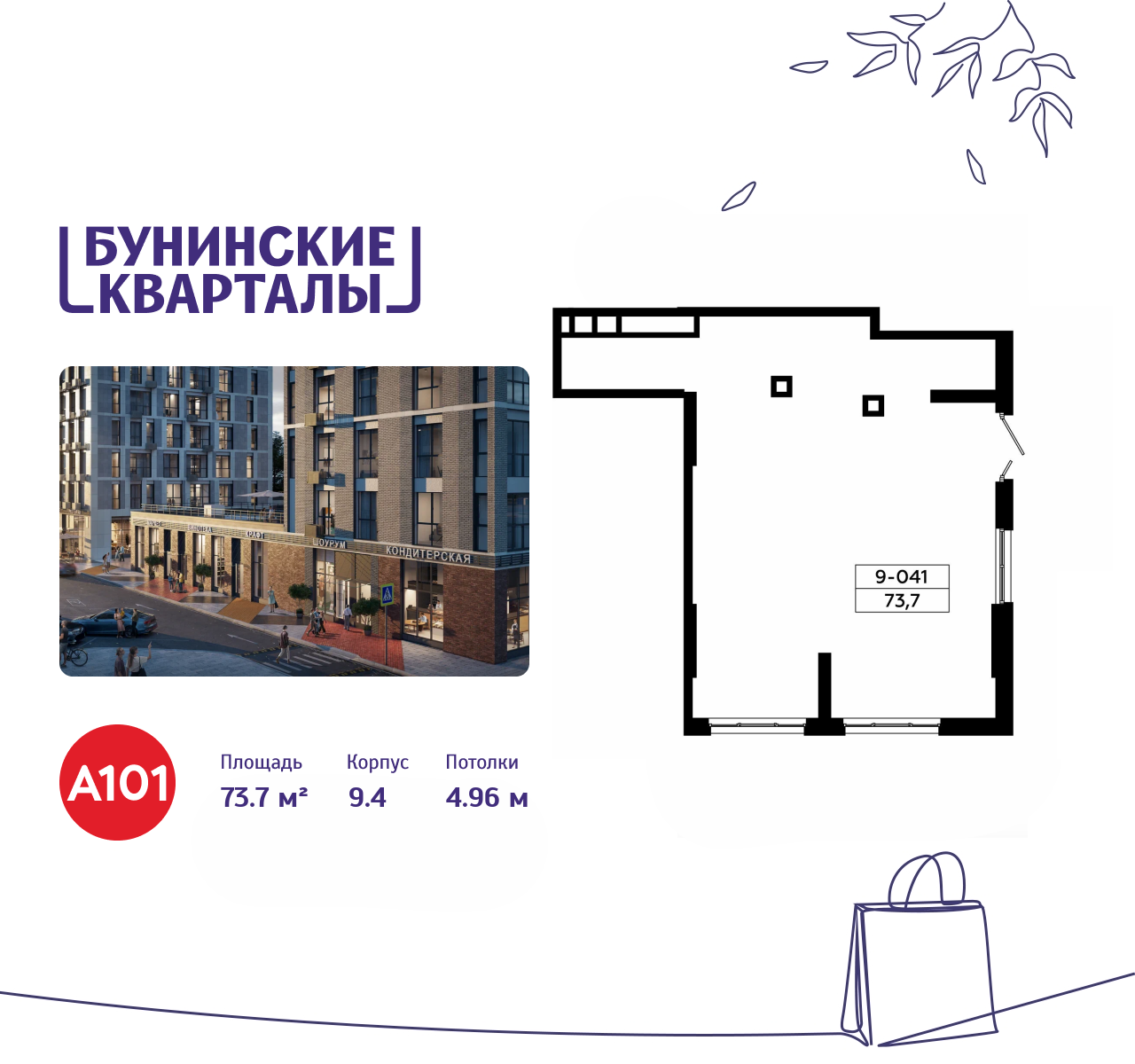 Снять торговое помещение 73 м² в ЖК Бунинские кварталы