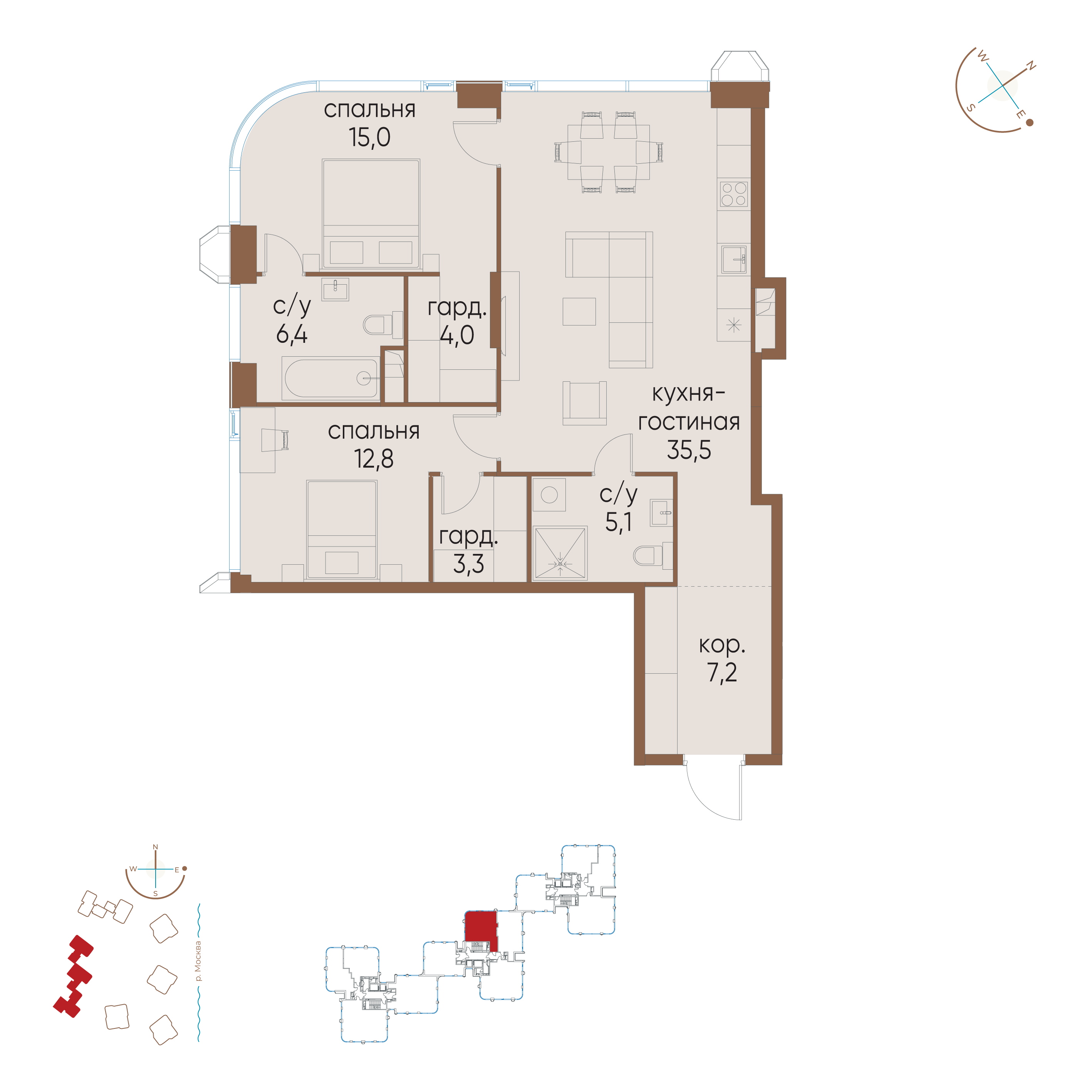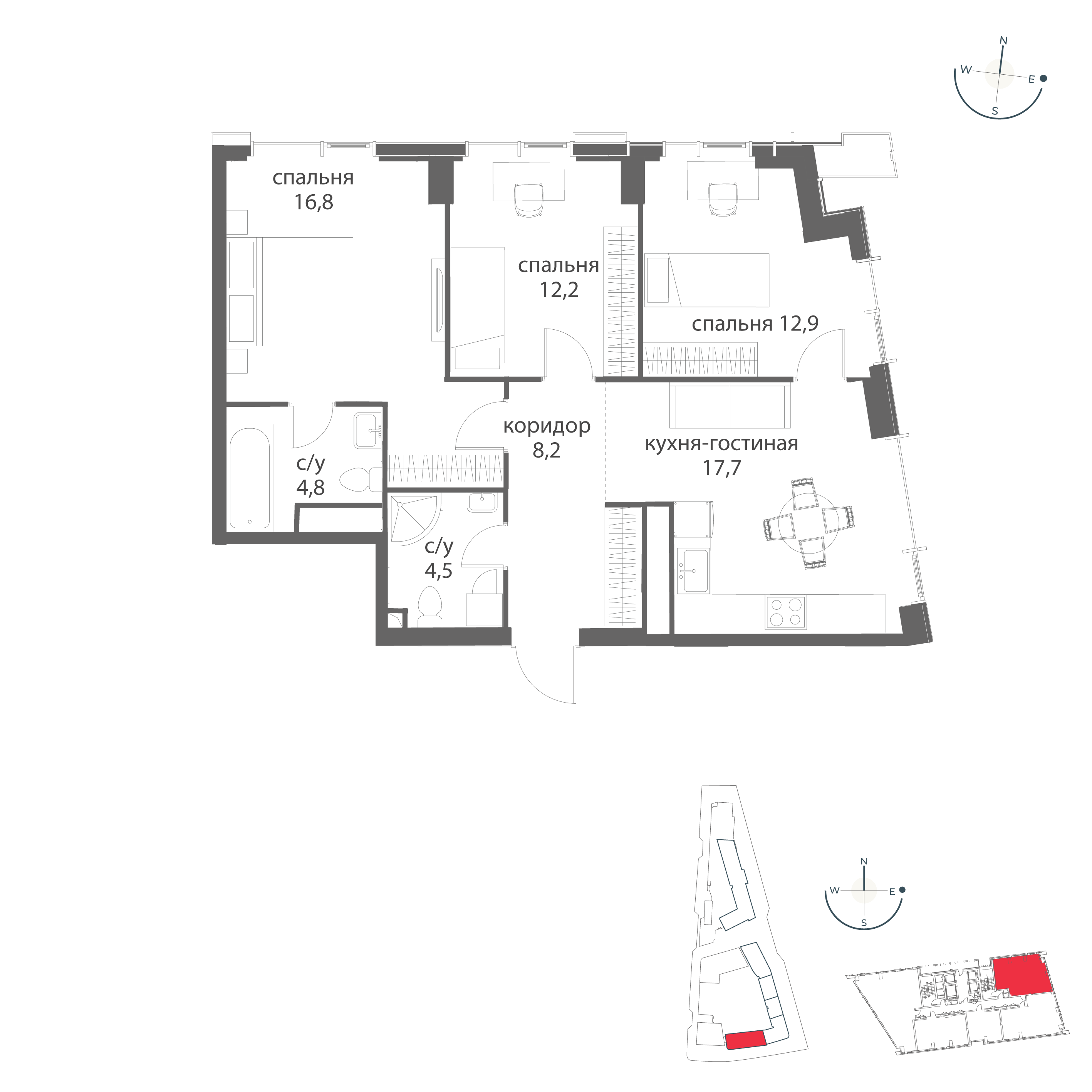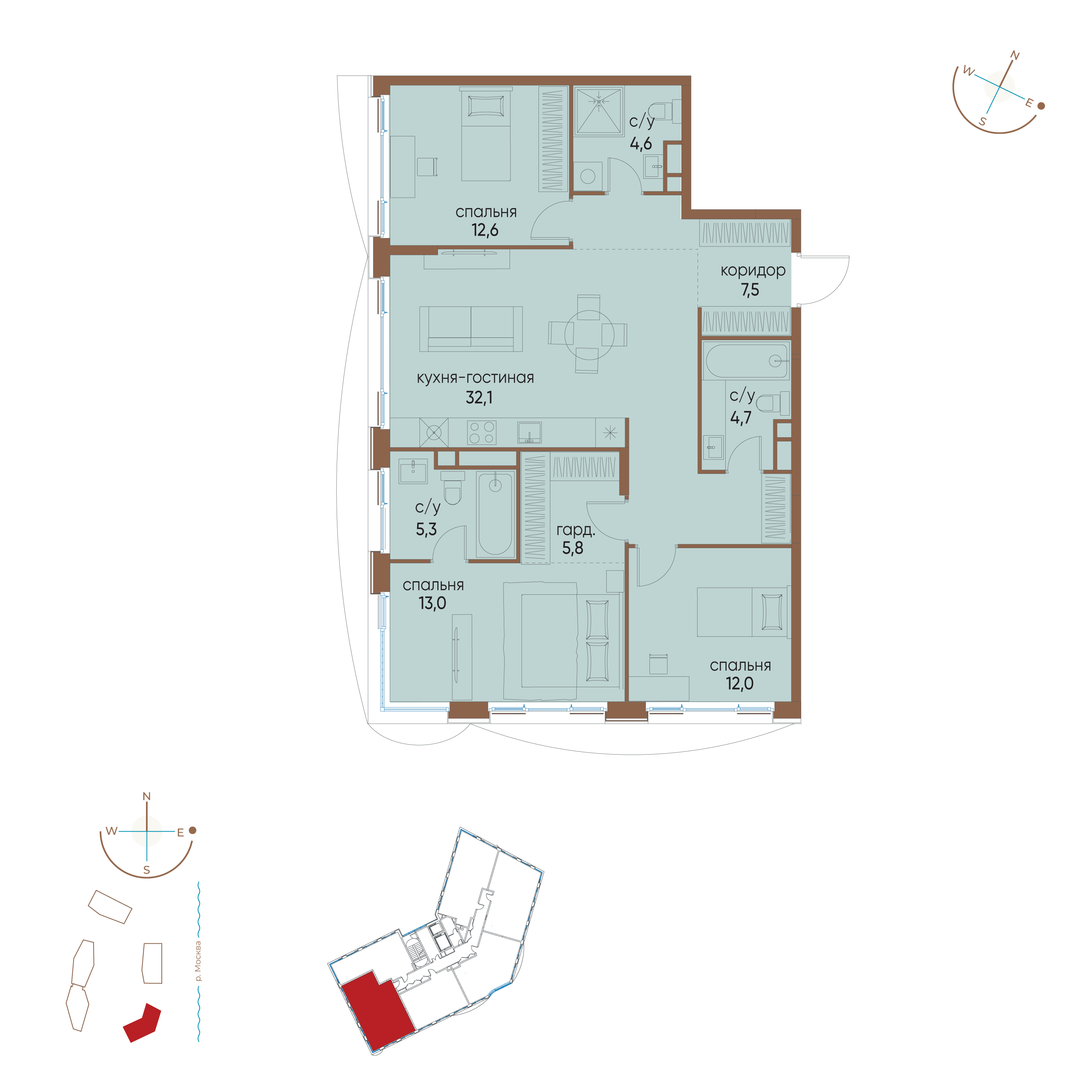 Купить 3к квартиру 126 м² в ЖК Алые Паруса