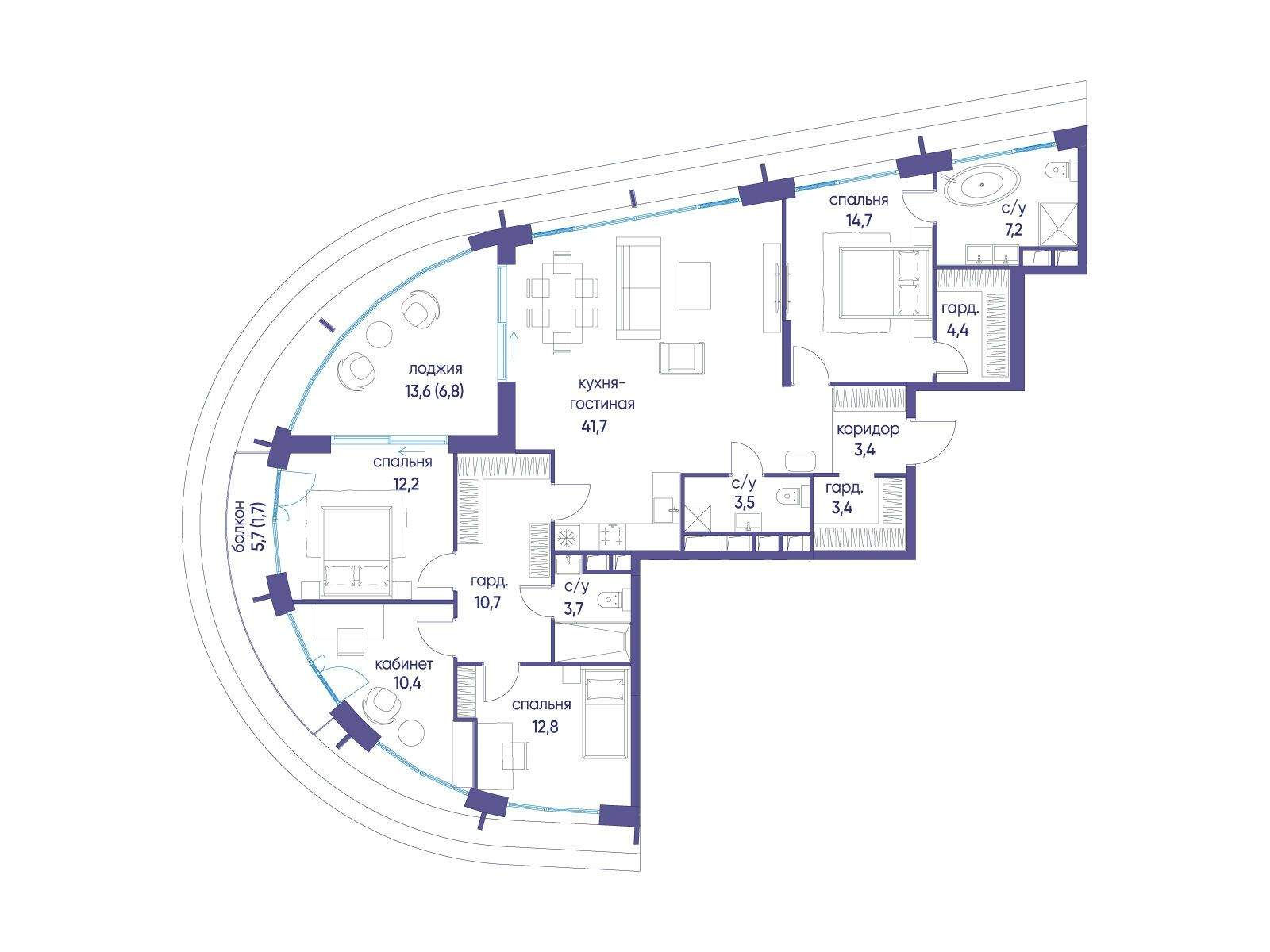 Продаётся 4-комн. квартира от застройщика: общая площадь 136.70 м, жилая 37.36 м, кухня 41.70 м, 15-й этаж, жилой квартал «Остров 7», корпус 5 (секция 2) . Срок сдачи: 3 квартал 2028 года.