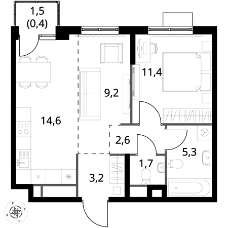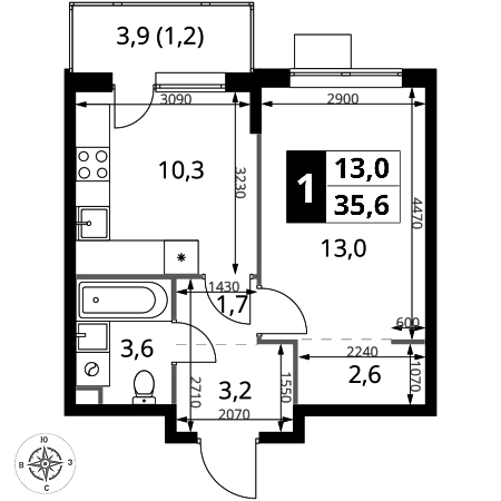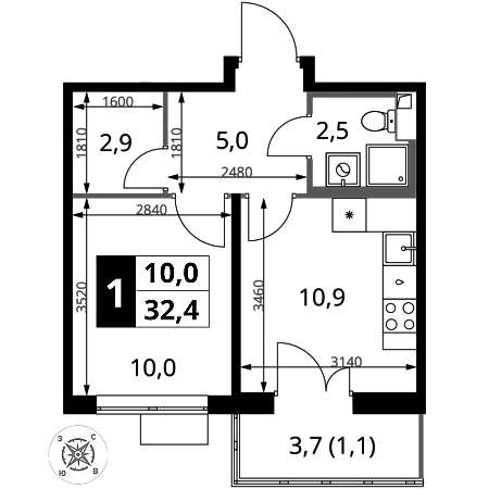 Квартира передаётся собственнику в отделке Вайт бокс .