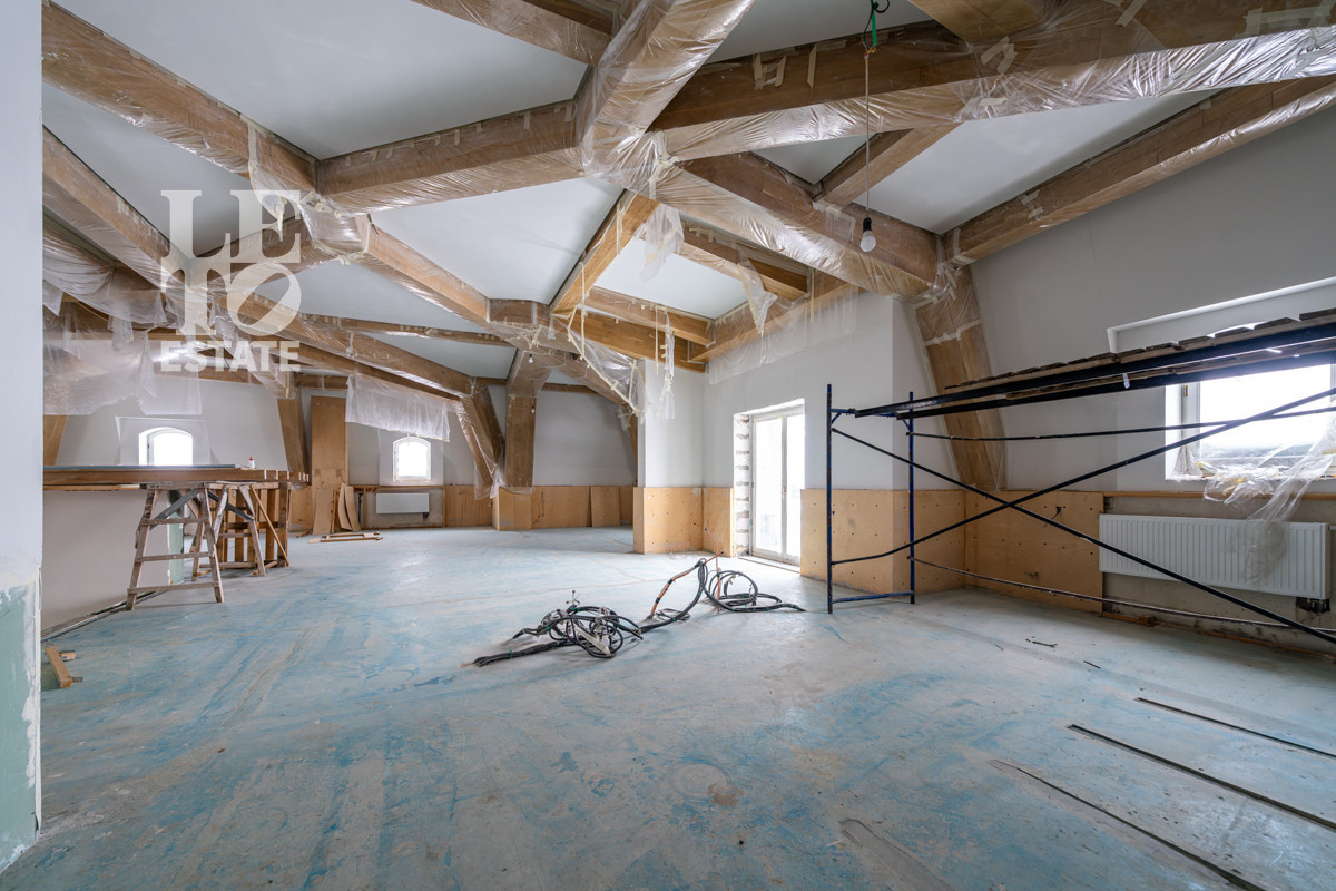 На третьем этаже для облицовки балок использовался натуральный дуб.