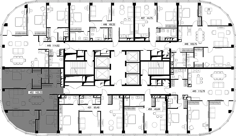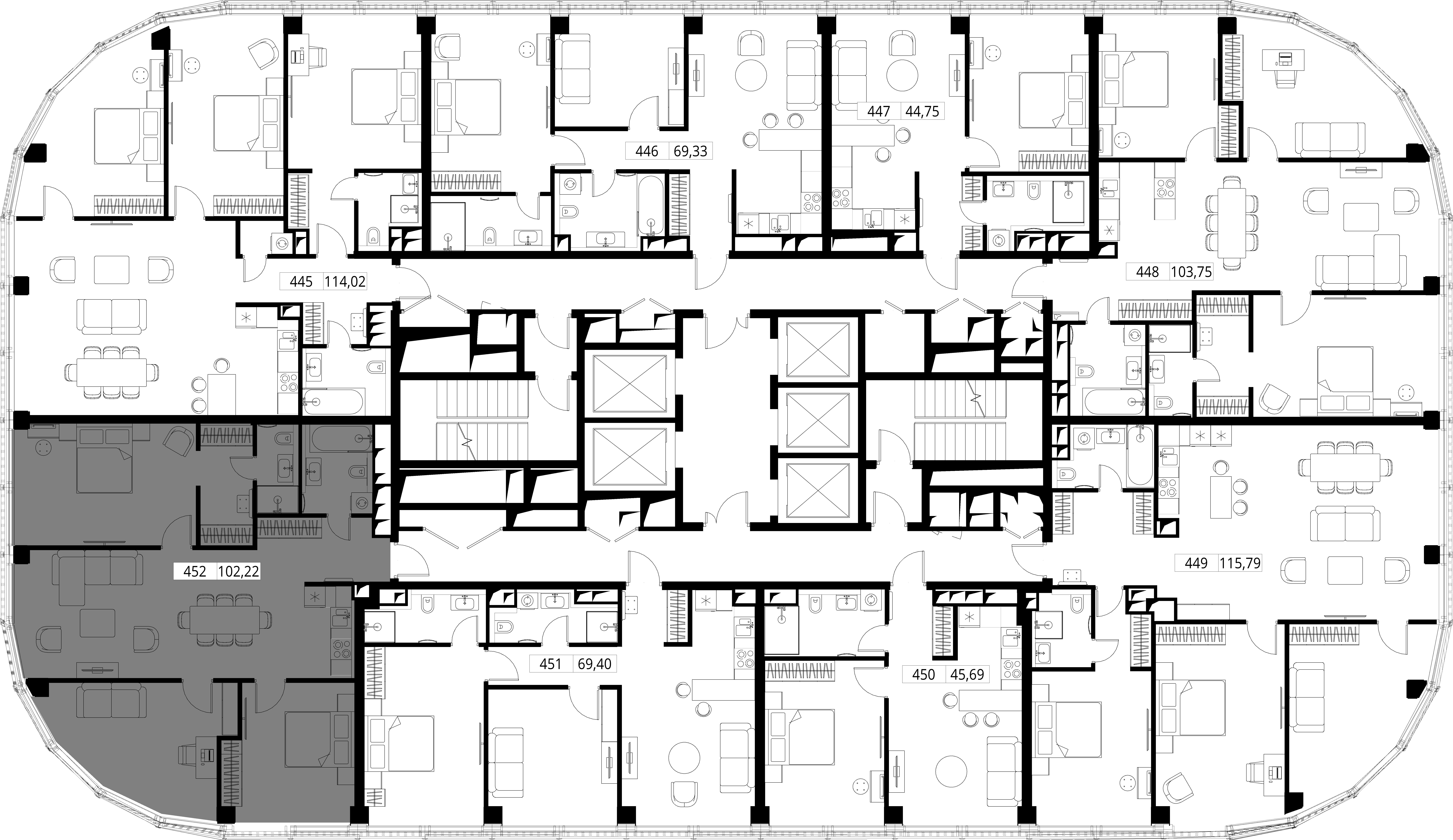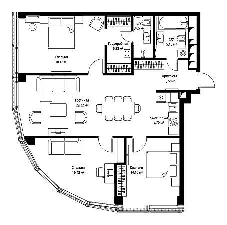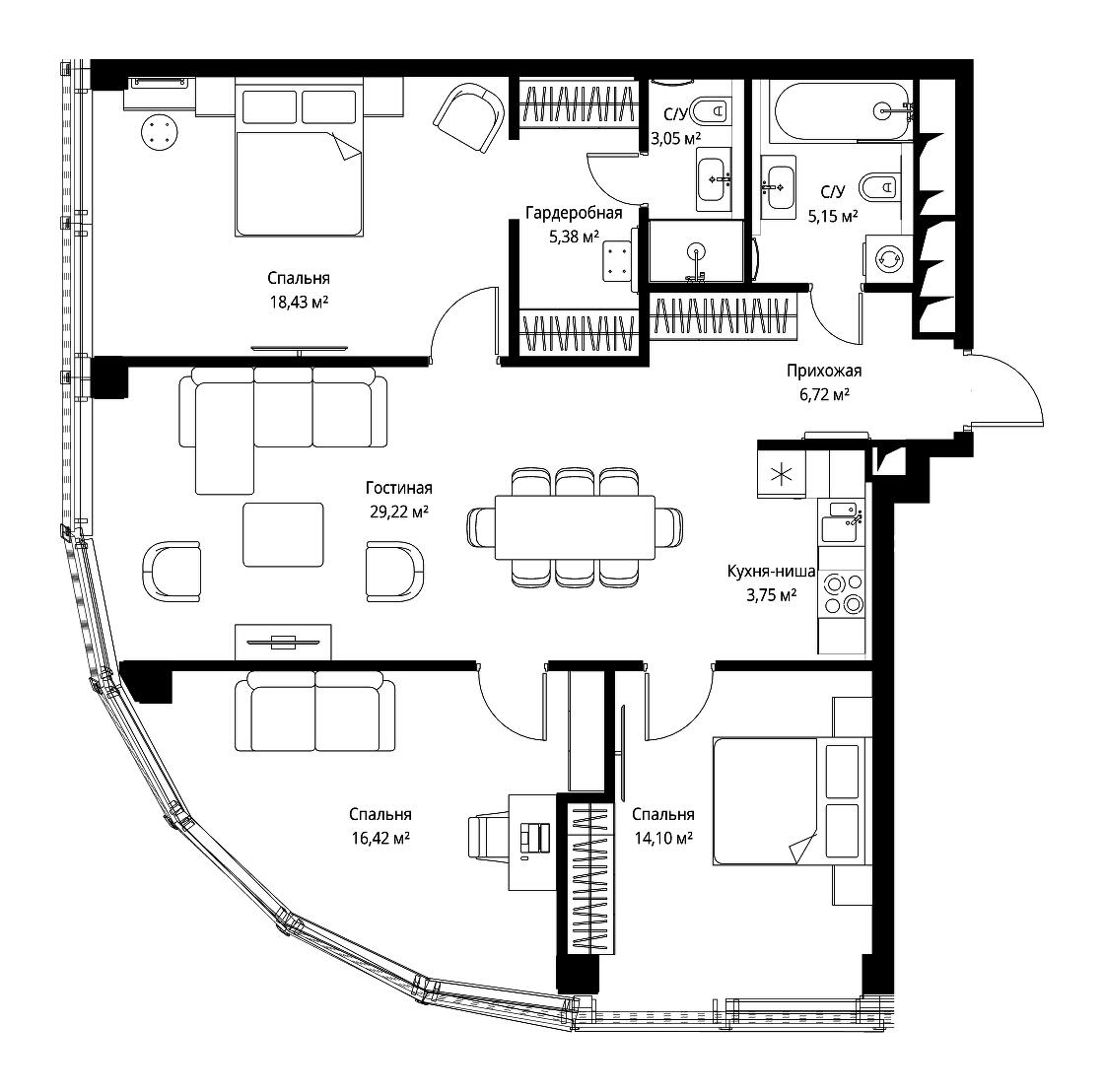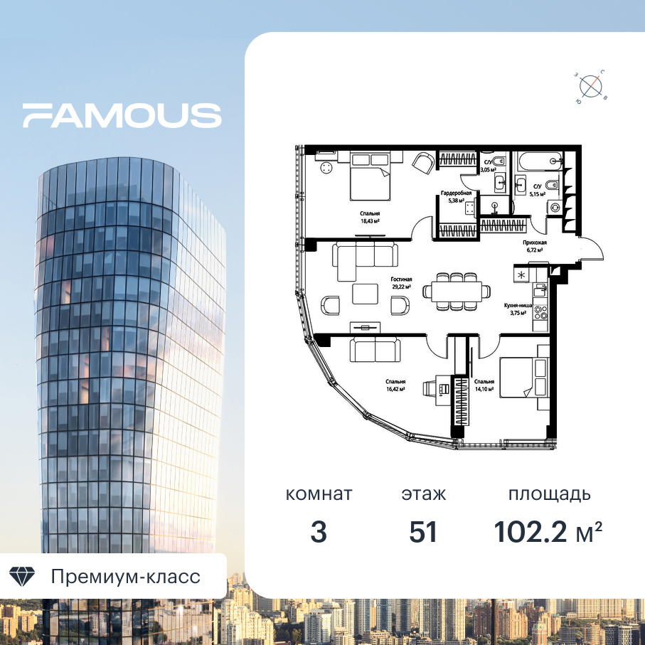 Продаётся 3-к квартира общей площадью 103 кв. м с предчистовой отделкой на 51-м этаже премиального небоскреба Famous.