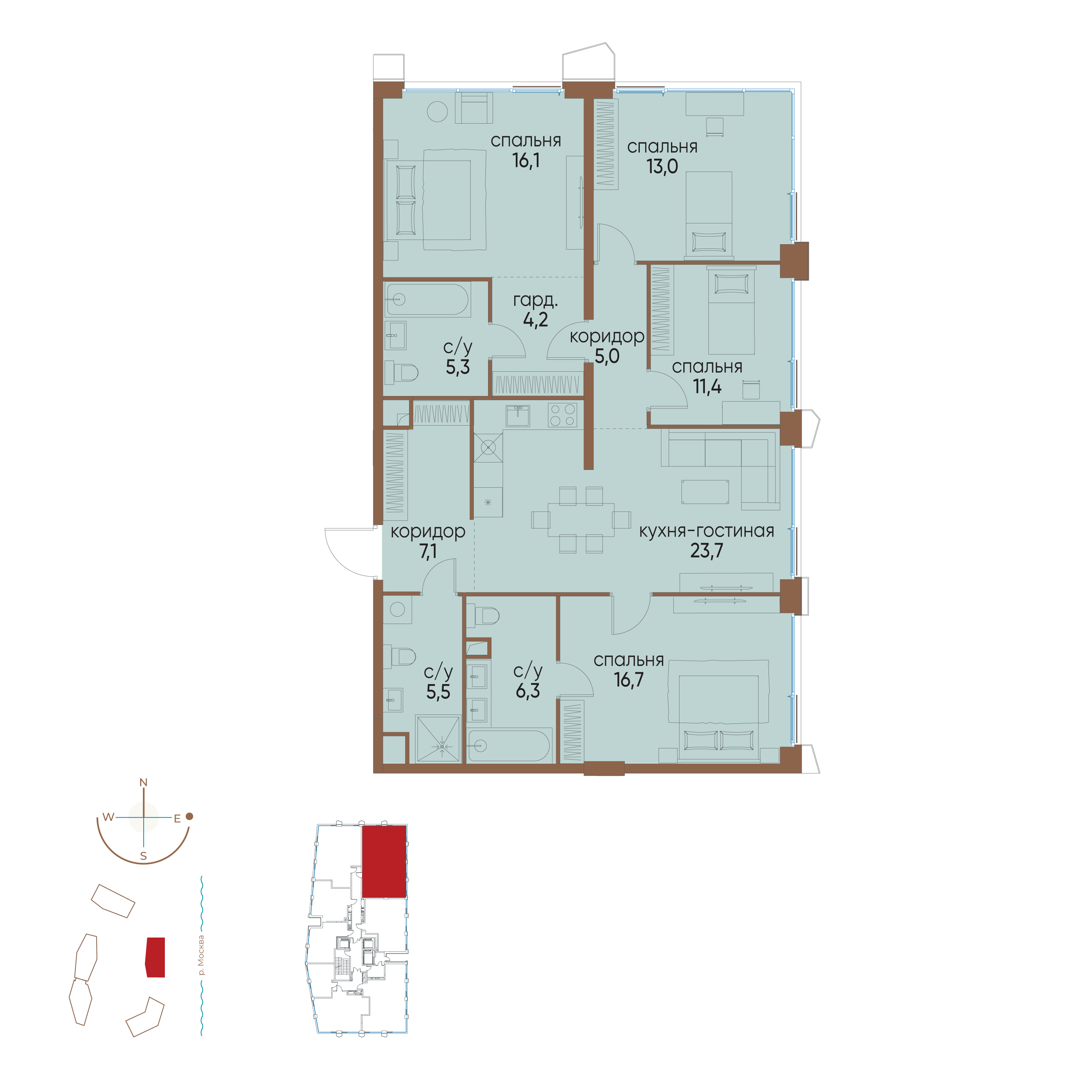 Продаётся 3-к квартира общей площадью 101.80 кв. м с предчистовой отделкой на 27-м этаже премиального небоскреба Феймос.