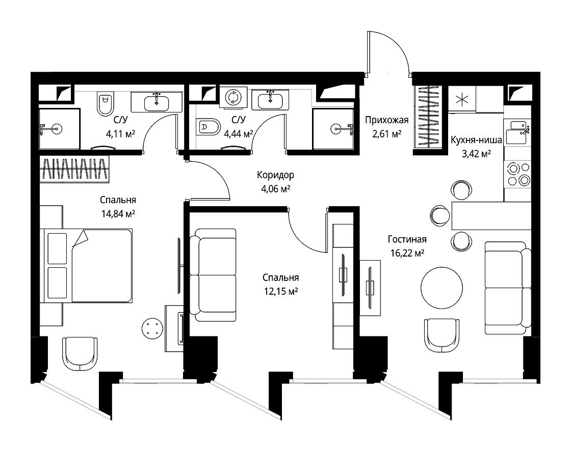 Купить 1к квартиру 55 м² в жилом доме Famous