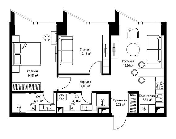 Продаётся 2-к квартира общей площадью 62.10 кв. м с предчистовой отделкой на 17-м этаже премиального небоскреба Famous.