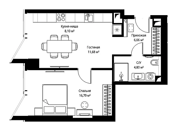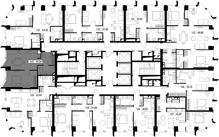 Продаётся 1-к квартира общей площадью 47.30 кв. м с предчистовой отделкой на 14-м этаже премиального небоскреба Famous.