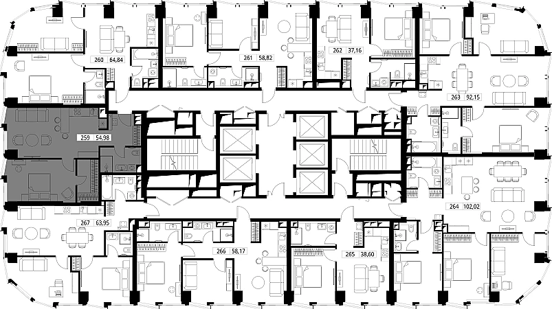 Продаётся 1-к квартира общей площадью 55.20 кв. м с предчистовой отделкой на 29-м этаже премиального небоскреба Famous.