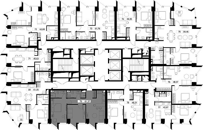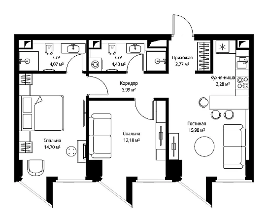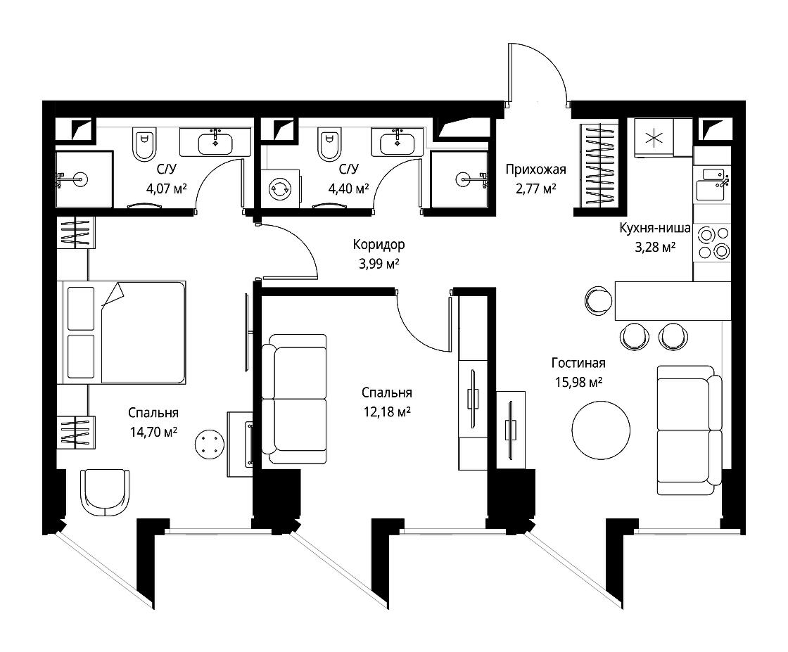 Продаётся 2-к квартира общей площадью 61.10 кв. м с предчистовой отделкой на 9-м этаже премиального небоскреба Famous.