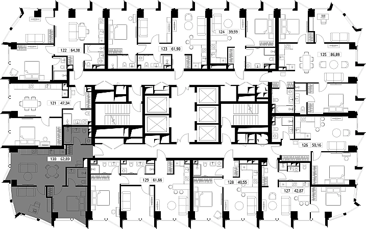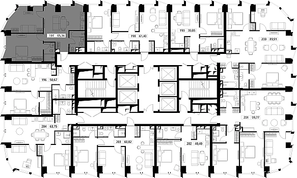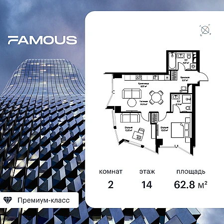 Продаётся 2-к квартира общей площадью 63 кв. м с предчистовой отделкой на 14-м этаже премиального небоскреба Famous.