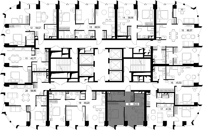 Продаётся 1-к квартира общей площадью 39.20 кв. м с предчистовой отделкой на 3-м этаже премиального небоскреба Famous.